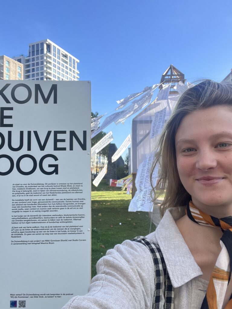 Tessa sprak met enthousiaste kunstenaars en onderzoekers en zag allerlei verschillende kunstwerken. ‘Ik zag veel inspirerende, positieve en idealistische visies op een toekomst waarin we duurzaam, sociaal en eerlijk omgaan met ons eten, ons werk en onze woonomgeving. Het was prachtig om te zien hoe kunst de verbeelding van de kijkers kan prikkelen. Maar ik miste daarin de verbinding met de realiteit en de praktijk van de betreffende thema’s. Daarnaast viel me op dat ik geen boeren, natuurbeheerders en gebiedsontwikkelaars tegenkwam op de Dutch Design Week’, blikt Tessa terug.