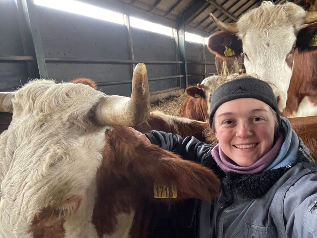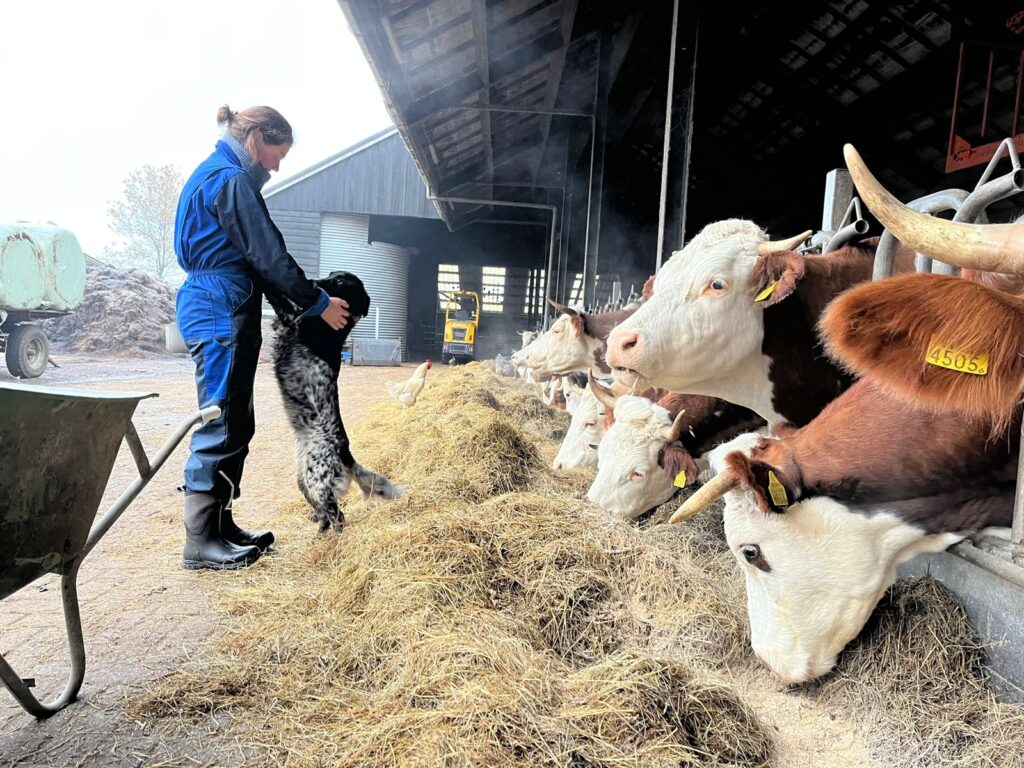 Haar liefde voor het platteland en de landbouw kreeg Vera met de paplepel ingegoten op het biologisch gemengde bedrijf van haar ouders. ‘Als kind hielp ik al mee met alles wat er te doen was op de boerderij. Van koeien voeren tot groenten oogsten, van boompjes planten tot in de boerderijwinkel staan. In de winkel worden niet alleen producten van eigen erf verkocht, zoals vlees, eieren en groenten, maar ook producten van collega-boeren uit de buurt. Ik werk nog steeds mee op het bedrijf omdat mijn hart bij dit werk ligt. Vooral het werken met de koeien vind ik leuk, ik ben enorm koeienfan’, vertelt ze met een brede glimlach.